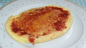 Ten przepis to szybki i przepyszny pomysł na weekendowe śniadanie. Jedyną trudność może sprawić przewrócenie omletu na drugą stronę, ale to tylko kwestia wprawy. Moi synkowie go uwielbiają, szczególnie z konfiturą malinową lub truskawkową i kubkiem kakao. Podane składniki są na jeden średni omlet.