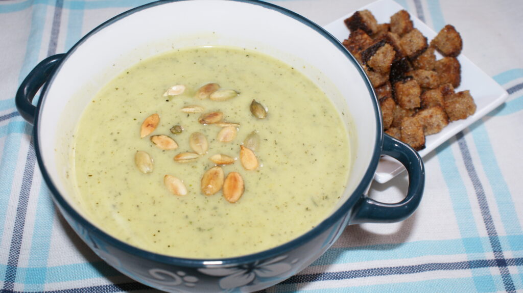 - Podawać z grzankami i uprażonymi na suchej patelni pestkami dyni