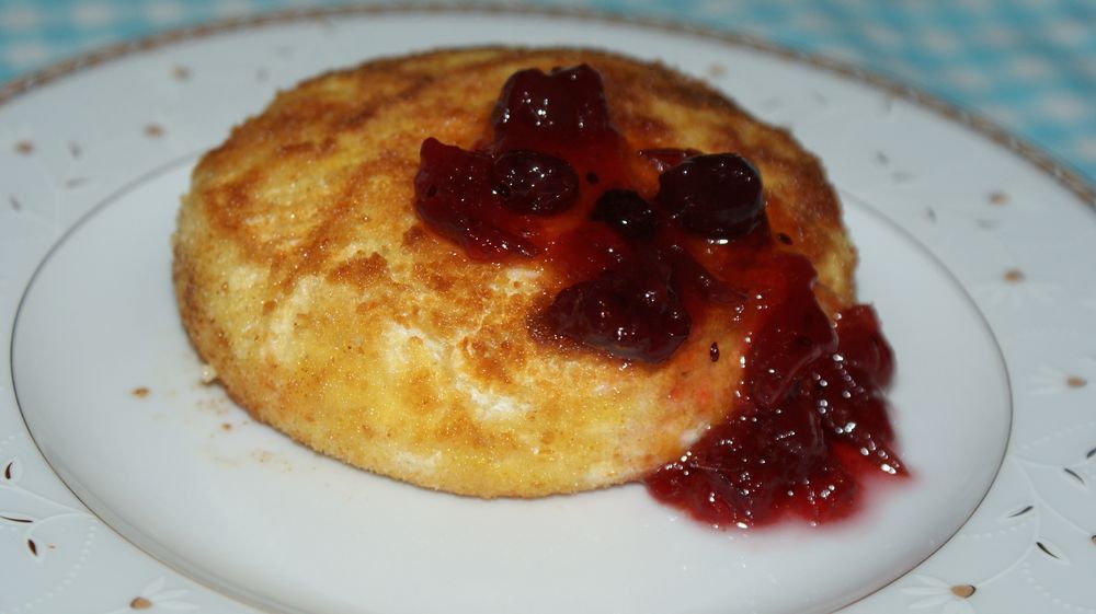 Panierowany camembert podany z dodatkami (u mnie zapiekane ziemniaczki, żurawina i sałata) to idealna propozycja na kolację, a w wersji tylko na sałacie stanowi świetną przekąskę. Najlepiej podawać go zaraz po usmażeniu, dopóki jest gorący i ma płynną konsystencję. Niestety nie należy do dietetycznych dań, dlatego żeby zmniejszyć wyrzuty sumienia trzeba ratować się słuszną ilością wina na poprawę trawienia:)