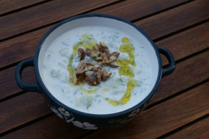 Tarator jadłam lata temu w Bułgarii, ale dopiero teraz zrobiłam go w domu. W smaku przypomina greckie tzatziki, z tym że jest bardziej rzadki i zawiera ekstra składnik jakim są orzechy włoskie. Bułgarski chłodnik jest idealnym rozwiązaniem na letnie upały – danie bez gotowania w zaledwie kilka minut.